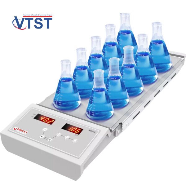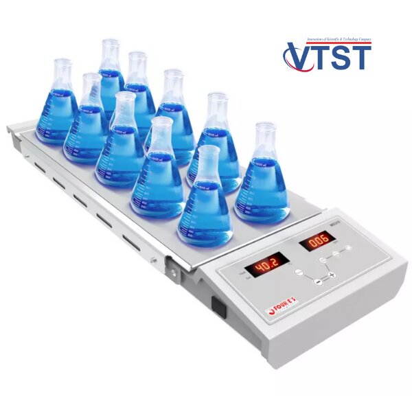 - Máy khuấy từ gia nhiệt 10 vị trí hiển thị số thể tích tối đa 400mL